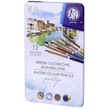 Kredki akwarelowe z drewna cedrowego Astra Prestige 12 kolorów metalowe opakowanie