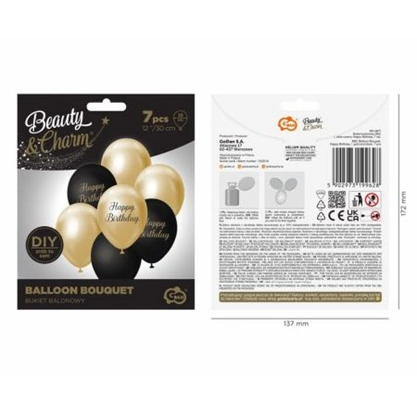 Bukiet balonowy B&C j. złoto-czarny Happy Birthday, 7 szt.