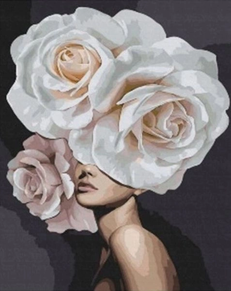 DIAMENTOWA MOZAIKA KOBIETA Z RÓŻAMI BIAŁYMI NA GŁOWIE 30X40cm