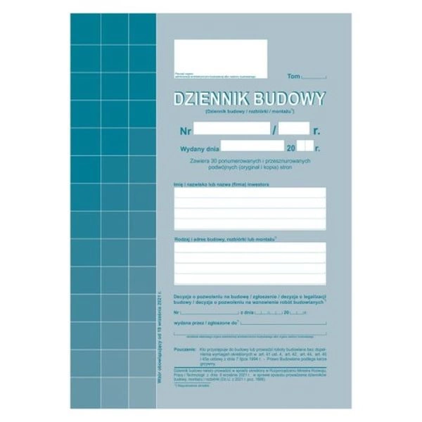Dziennik Budowy A4 (40 stron) 603-1Z