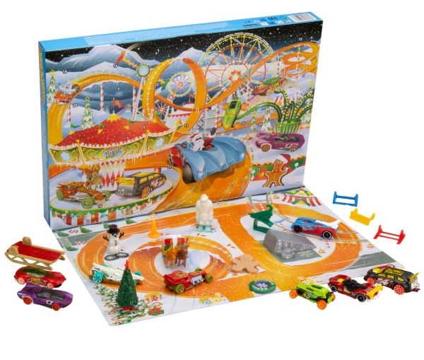 - Ciesz się magią świąt z Kalendarzem adwentowym Hot Wheels, który zawiera samochodziki i ciekawe akcesoria wprowadzające w świąteczny nastrój.