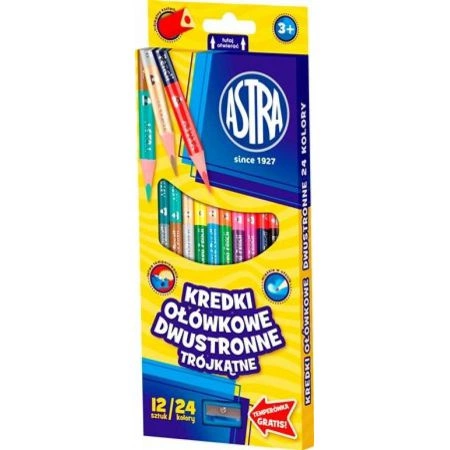 KREDKI OŁÓWKOWE TRÓJKĄTNE, DWUSTRONNE+TEMPERÓWKA 12SZTUK/24KOLORY
