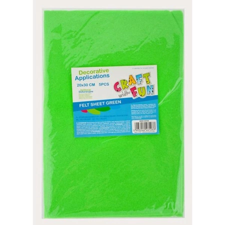 OZDOBA DEKORACYJNA FILC ARKUSZ 20X30/ 5SZT ZIELONY