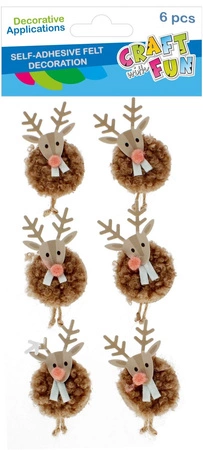 Ozdoba dekoracyjna filcowa samoprzylepna Renifer 6szt. Boże Narodzenie CRAFT WITH FUN 545815