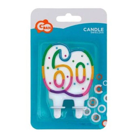 Świeczka cyferka z kropeczkami '60', 8 cm