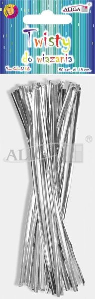 Twisty TW-1825 srebrne do wiązania dł.18cm op.50szt.