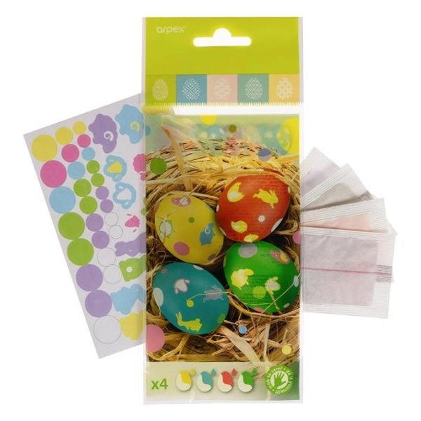 Zestaw do zdobienia pisanek (barwniki 4 szt., arkusz z kolorowymi naklejkami)