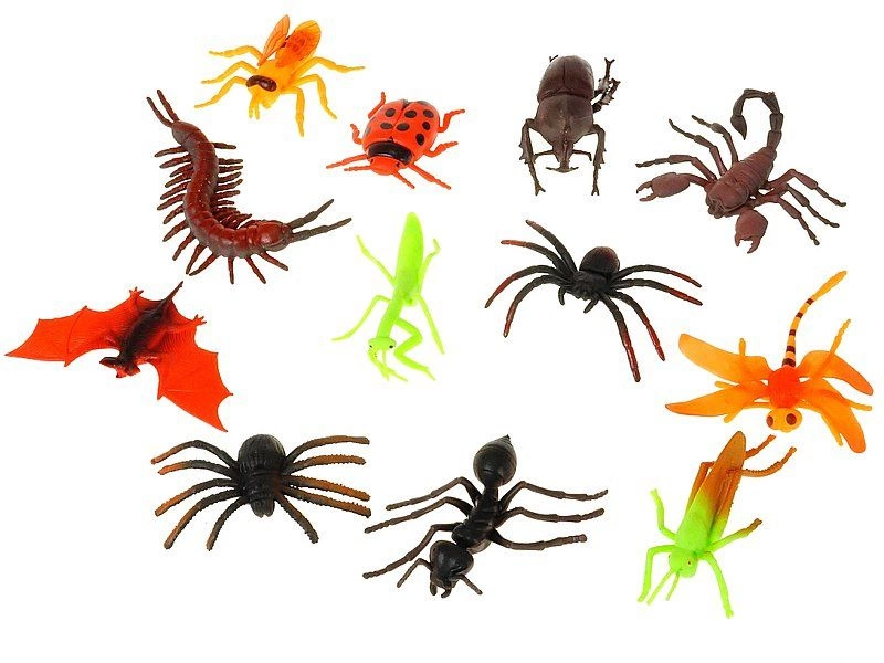 ZESTAW ZWIERZĄT-zestaw 12 zwierząt, pająki, owady, nietoperze; 26x23x4cm, PVC